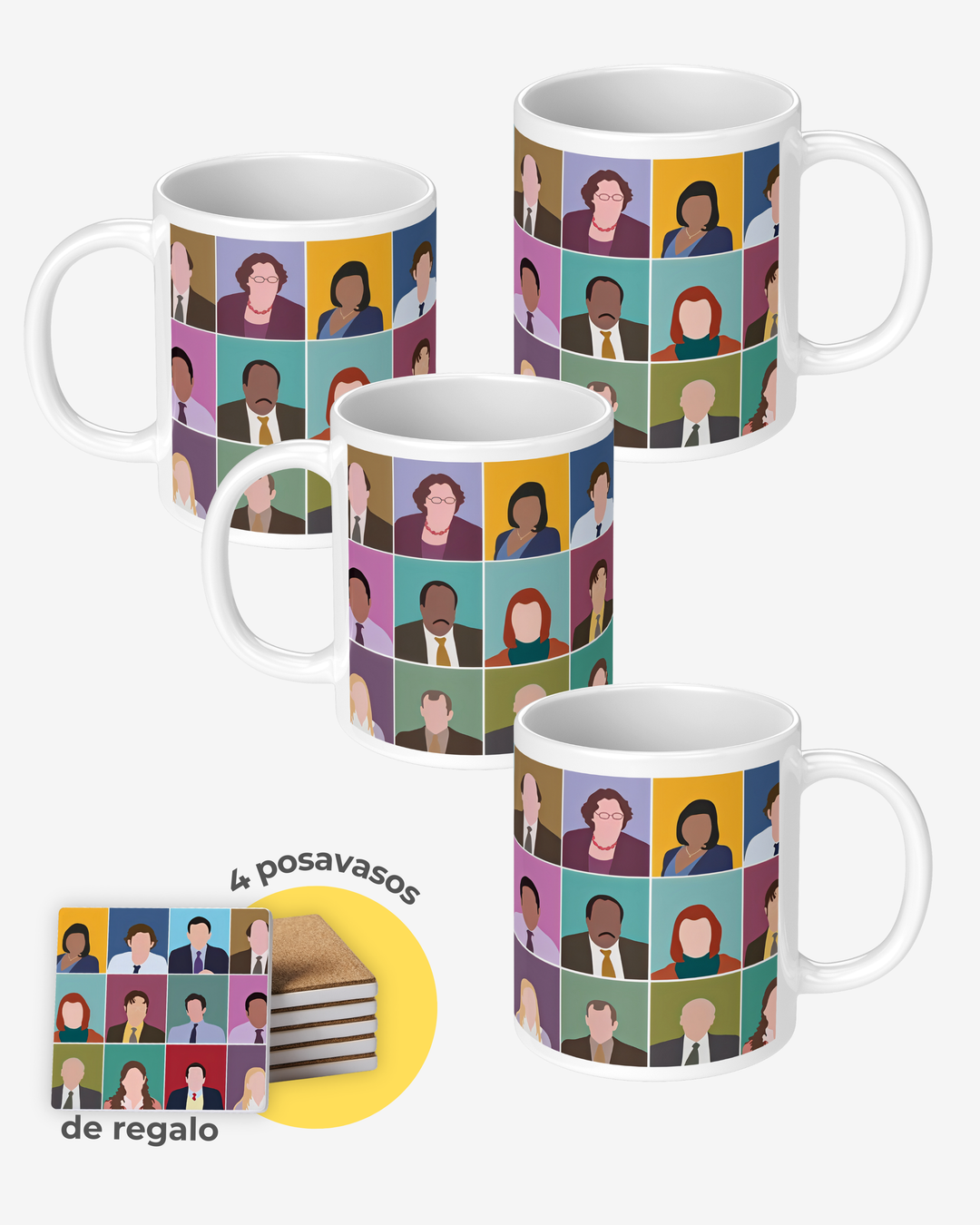 Set 4 Tazas The Office Personajes + Posavasos Regalo Product Image
